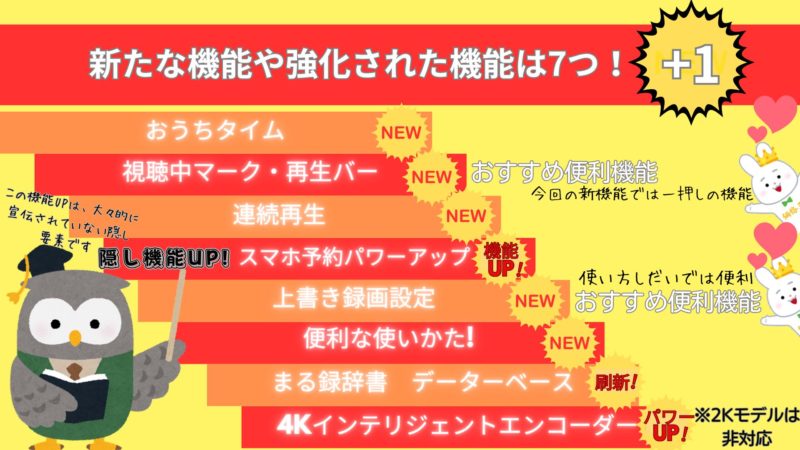新たな機能は、2023年4Kモデルで採用された機能を追加したカタチです。(4Kインテリジェントエンコーダーは除く)