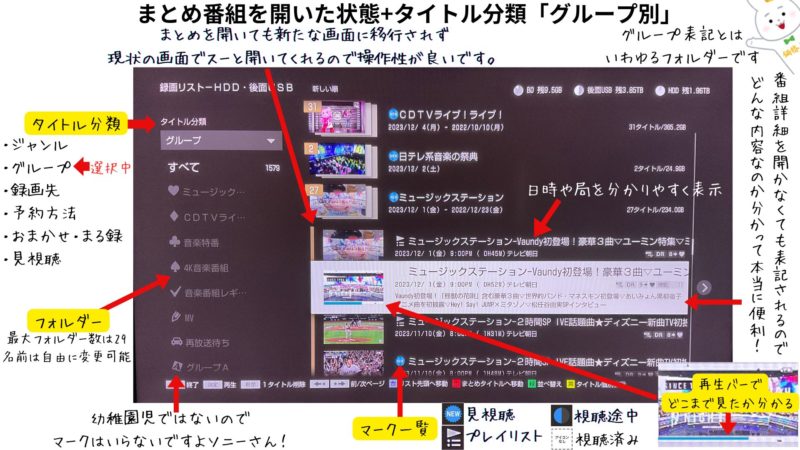 外付けHDD仕様:内蔵HDDと切り替えなくても一緒にMIX表示できて制限も少なく使い勝手がよい ◀ソニーオリジナル